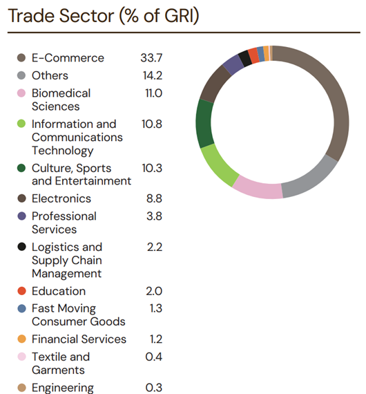 Singapore-Hangzhou Science & Technology Park Phase I is an integrated business park located in the heart of Hangzhou Economic and Technological Development Area. The Phase I property comprises of five R&D buildings of four to 20 storeys and two ancillary buildings. The property is in close proximity to Hangzhou Metro Line 1 and Line 8, and adjacent to Zhejiang’s largest university zone. Singapore-Hangzhou Science & Technology Park Phase I hosts a good mixture of companies including MiRXES, CITIC Bank and Si Shan Technology across sectors such as Biomedical Sciences, E-commerce and Professional Services. Singapore-Hangzhou Science & Technology Park Phase I attained its green certification in 20231.